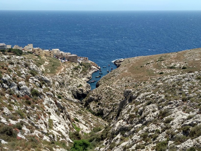 Чтобы добраться непосредственно до Голубого грота, нужно отправиться на небольшую морскую прогулку. Ближайшая к Голубому гроту лодочная станция находится в деревеньке Wied iz Zurrieq и одноименном заливе, который представляет собой остро врезающуюся в сушу бухту, и со стороны трассы выглядит вот так.
