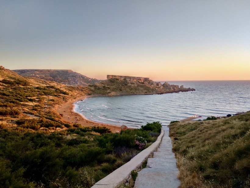 Если вы путешествуете по Мальте на арендованной машине, то тут все максимально просто. Бесплатная парковка расположилась на холме над пляжем. Бросайте машину здесь и спускайтесь по лестнице.