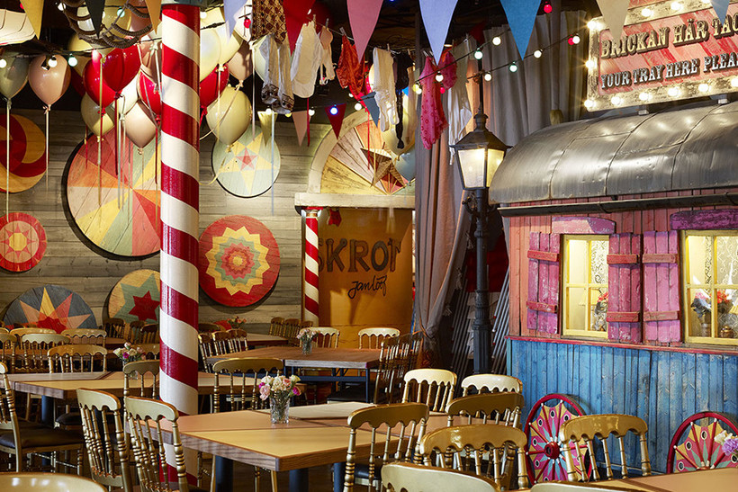 О, кафе. Пожалуй,тут мы и останемся! Дизайн кафе выполнен в стиле цирка что ли. Я не особо поняла, но было очень ярко и туда хотелось зайти. И еще эти колонны в виде конфеток.