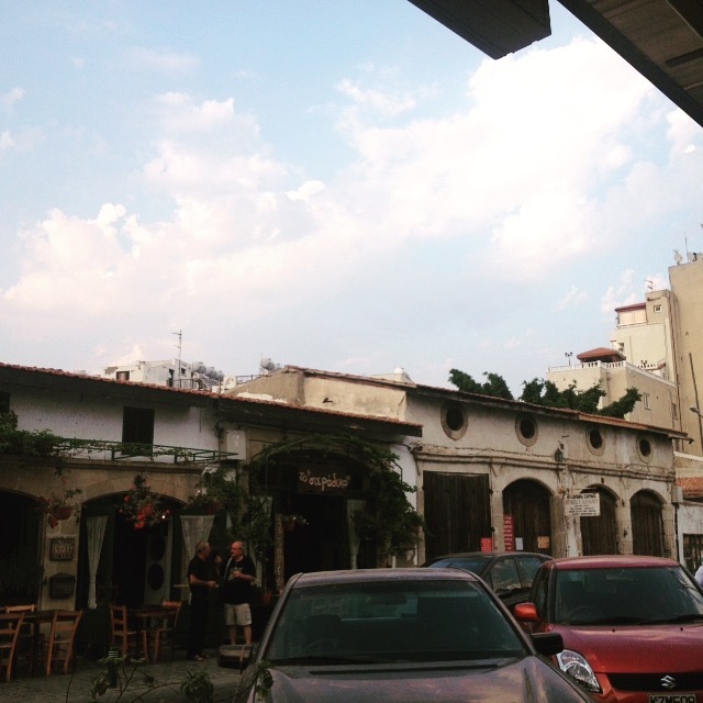 Там же, где магазины сувениров, среди рядов есть огромный ассортимент ресторанчиков и кафе с местной кухней.Мы были с долгой дороги и конечно же нам хотелось поужинать. Выбрали мы кафе с местной кухней, где заказали Фраппе (холодный кофе со льдом и молоком, цена 2.5 евро) и мусаку (греческое национальное блюдо, цена около 9 евро). Кормят вкусно.