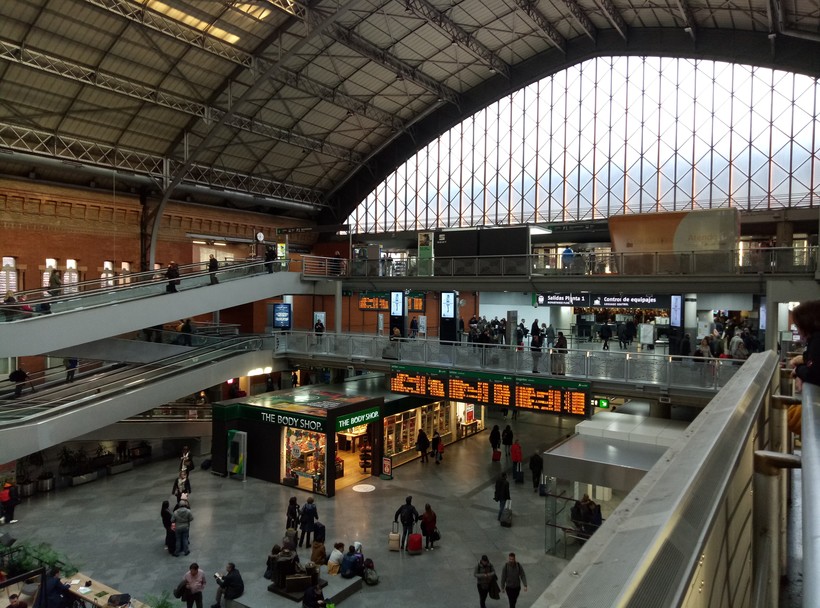 Мадридское метро очень удобное, поэтому выбрала именно этот способ. Выходить нужно на станции Atocha. Не переживайте, если у вас тяжелые чемоданы. На всех крупных станциях, как правило, есть либо эскалаторы, либо лифты. Аточа - не исключение.