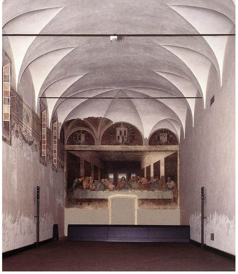 Произведение да Винчи производит сильнейшее впечатление. Оно как бы продолжает перспективу помещения, создавая дополнительный объем.