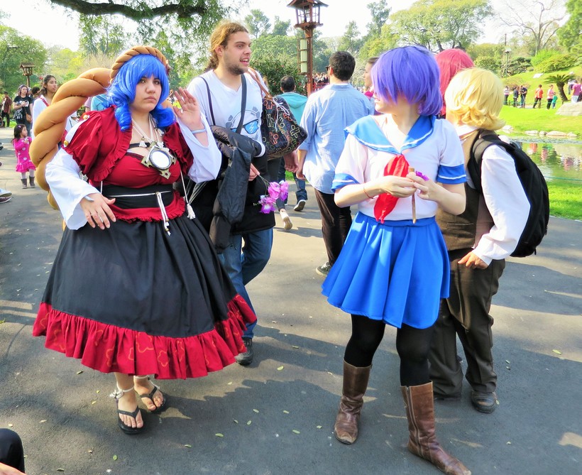 Первое, что мне бросилось в глаза при посещении Японского сада Буэнос Айреса - стайки любителей аниме. Такие ожившие герои японских мультфильмов в ярких париках и соответствующей одежде. Я не знаю всегда ли так, но я была в выходной день, может быть поэтому этих ярких людей оказалось так много.