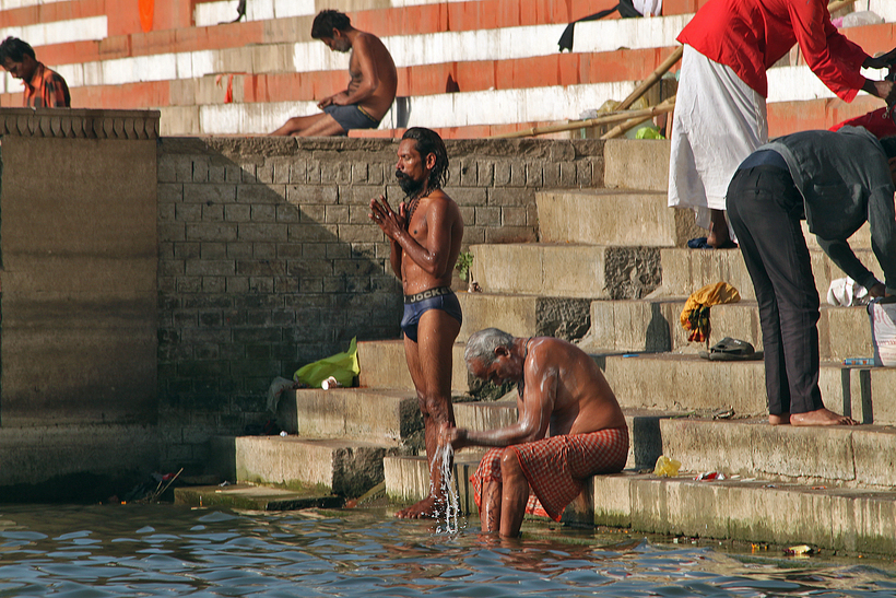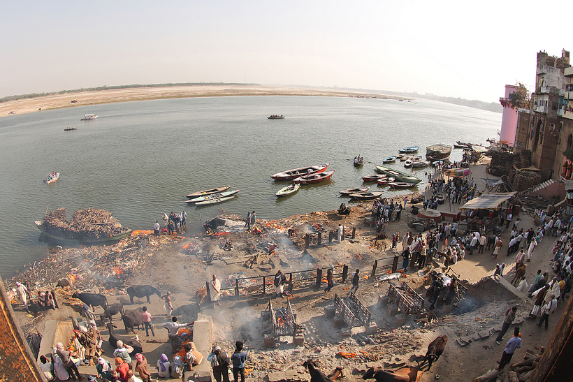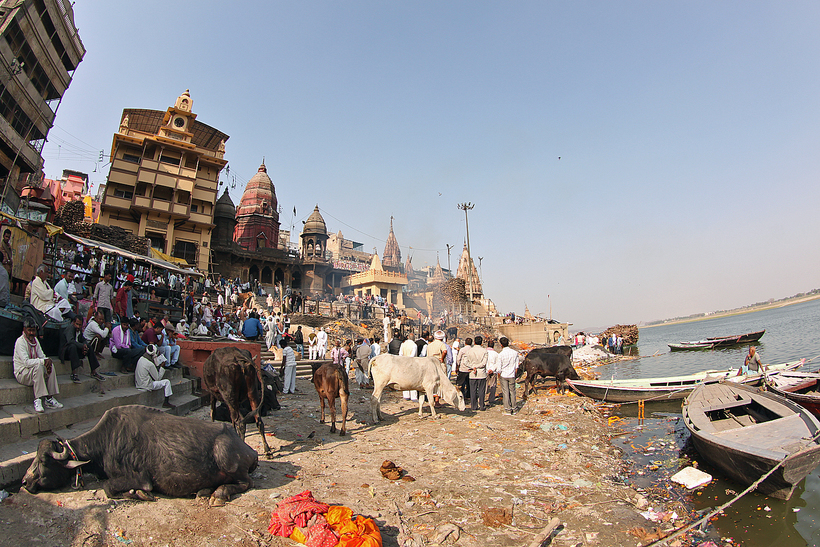 В настоящий момент в Варанаси есть более 80 гхатов, но для кремаций тел используется только два – это своеобразные ворота в загробный мир. На остальных кипит жизнь. Каждое утро люди приходят, чтобы совершить омовение в священных водах, здесь же чистят зубы, стирают и сушат белье, раскладывая его прямо на ступенях гхатов. Многие совершают какие-то религиозные обряды, кто-то медитирует или занимается йогой. Нищие просят милостыню, садху чинно восседают на ступенях и отрешенно взирают на все происходящее. Здесь же буйволы, коровы, козы, собаки. Добавьте сюда ни с чем не сравнимый запах, этакую смесь цветочного аромата и гари с легким оттенком тлена – и вы получите некоторое представление об атмосфере гхатов священного города Варанаси.