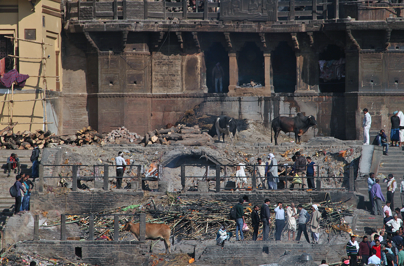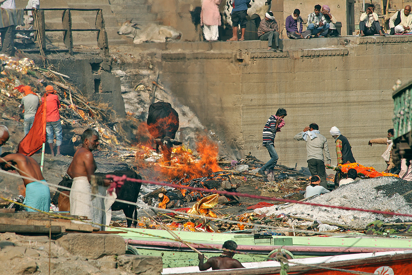 Как я уже писал, тела сжигают только на двух гхатах. День и ночь здесь горят погребальные костры. Как говорят, они не потухают уже несколько тысячелетий.