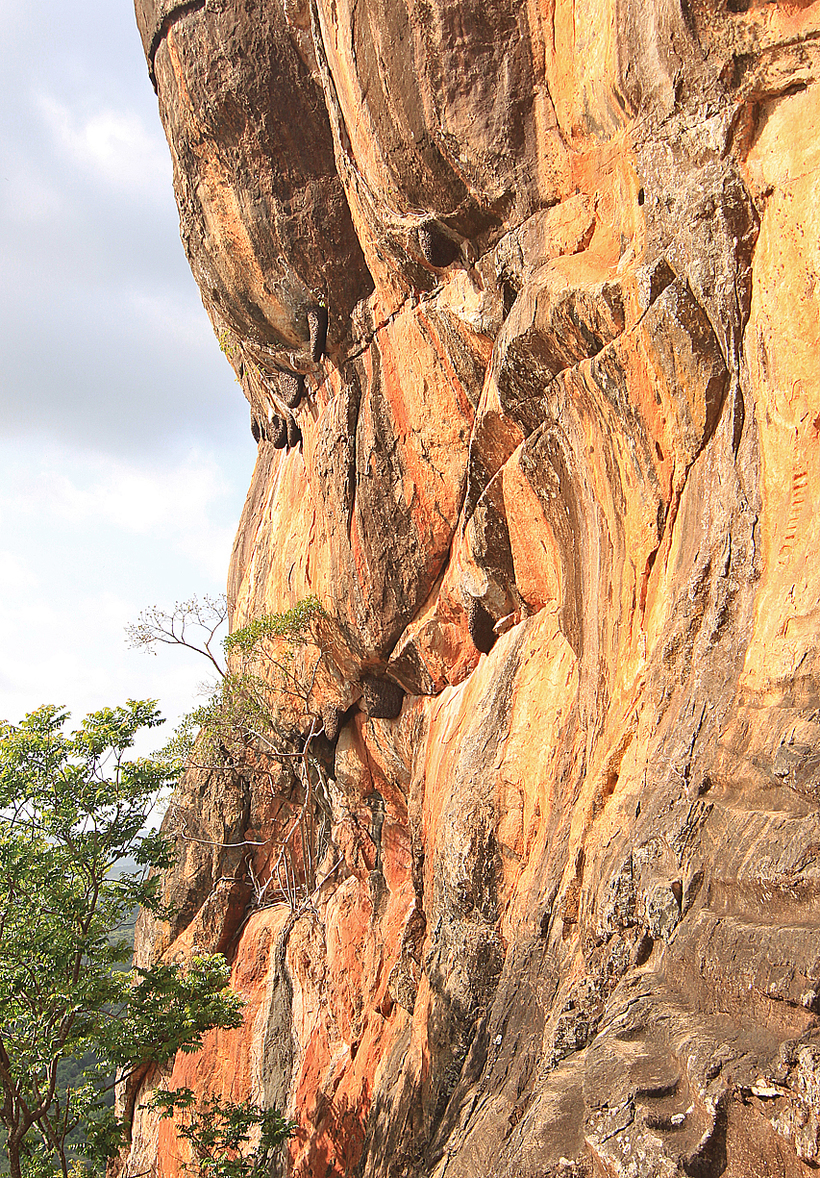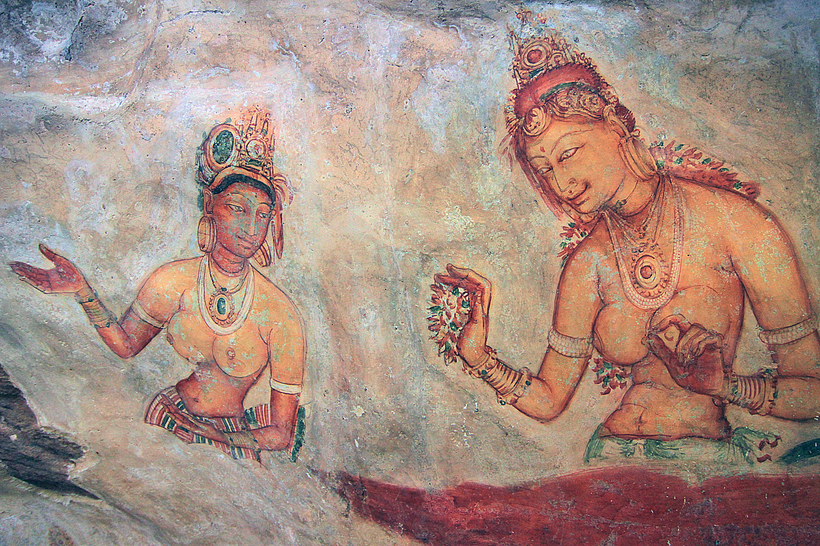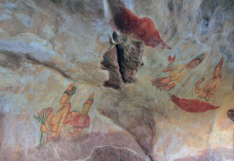 Затем начинается крутой подъем и проход через картинную галерею. Часть скалы покрыта фресками, изображающими наложниц короля и их служанок. Когда-то изображений было более 500, до наших дней сохранилось только 15. К сожалению, время беспощадно к произведениям искусства. Весомый вклад в дело уничтожения наскальной живописи внесли монахи в ту пору, когда здесь существовал буддийский монастырь. Полногрудые красотки мешали им сосредотачиваться и медитировать.
