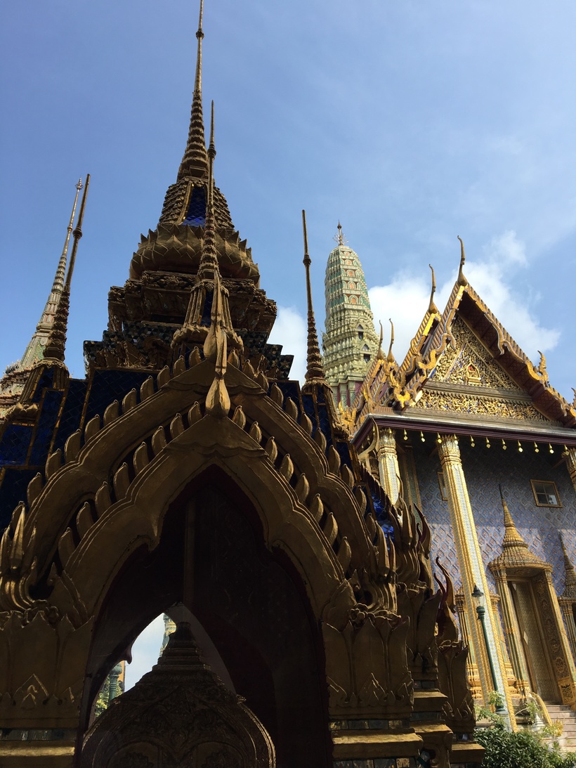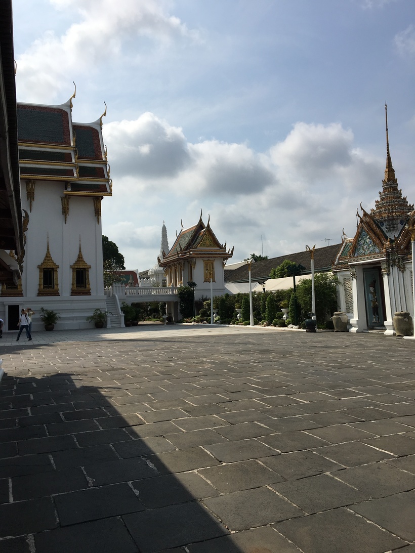 Мы шли в такой огромной людской толпе, что все красоты этого места стали терять свою привлекательность. К тому же стояла адская жара. На самом деле там несколько зданий, каждое из которых предмет искусства зодчих и место поклонения жителей Тайланда.