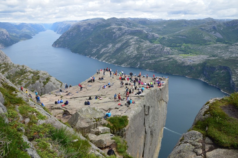 Вершина утеса квадратная и абсолютно плоская, примерно 25 на 25 метров. Так что в самый пик сезона и в хорошую погоду, там будет невозможно протолкнутся.