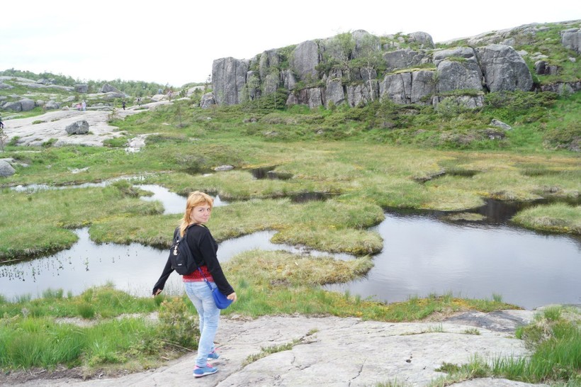 На утес поднимаются не только туристы, но и много местных, с маленькими детьми и собаками, некоторые норвежцы даже несколько раз за сезон. И люди совсем разных возрастов, мы встретили пару - мужа и жену, очень стареньких, но они поднялись и помогали друг другу.