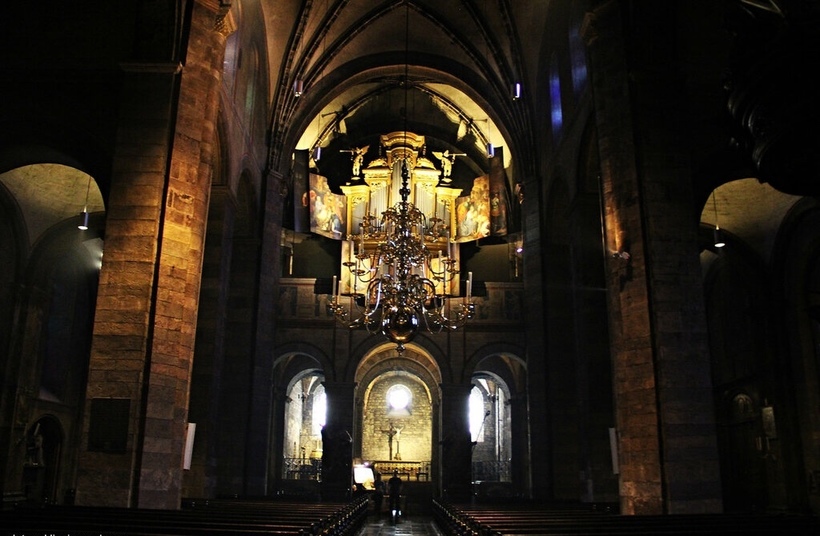 Мрачный зал Базилики освещается многочисленными свечами и светом, который падает через очень красивые витражные окна в виде икон. Отдельное внимание стоит уделить большому органу, который появился здесь в 17 веке.