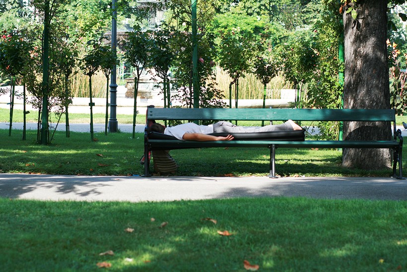 Он бывает. Но не всегда. По большей части, тут тихо, спокойно и можно поваляться на траве. Или на скамейке полежать, принеся с собой матрас, – сразу видно, что ты не бомж, а приличный человек, которому просто очень нужно отдохнуть. Некоторые так и отдыхают, а остальным остается только смотреть и завидовать.