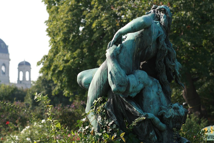 Конечно, есть там и памятник знаменитой императрице Элизабет, она же Сисси. Наверное, я еще не раз буду повторять это в своих отзывах об Австрии, но тут от данной исторической личности никуда не деться. Она и Моцарт, ну и «Поцелуй» Климта – это именно то, что чаще всего мозолит вам глаза. Я бы, конечно, в плане известности голосовала за потрясающую императрицу Марию Терезию (чей памятник можно найти через дорогу, между двумя музеями), однако народная слава – она такая... Данная скульптура, впрочем, мне очень нравится. Она нежная, спокойная, сидит себе вдалеке (подойти к ней близко нельзя из-за конструкции парка) и взирает издалека. Ощущение, что ты и впрямь на аудиенции.
