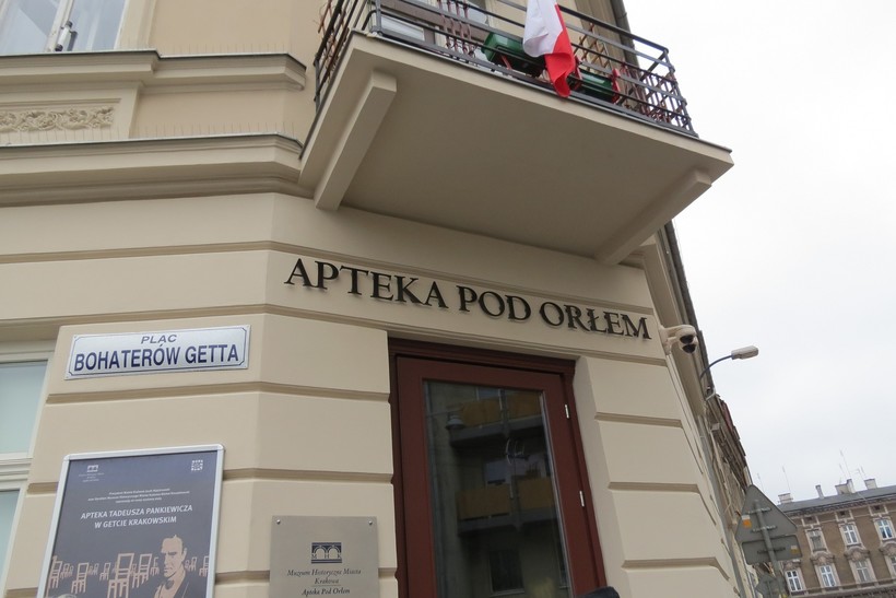 Когда я была на площади Героев Гетто в Кракове, не могла не зайти в знаменитую Аптеку под Орлом. Неприметное заведение на нижнем этаже одного из зданий, окружающих площадь. Если не знать предысторию, то можно и вовсе пройти мимо. Однако аптека заслуживает отдельного внимания.