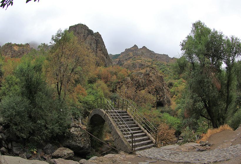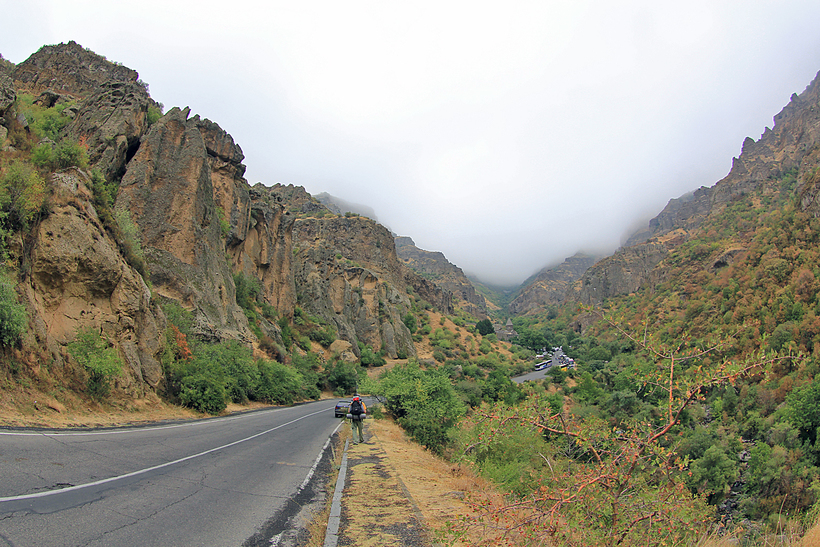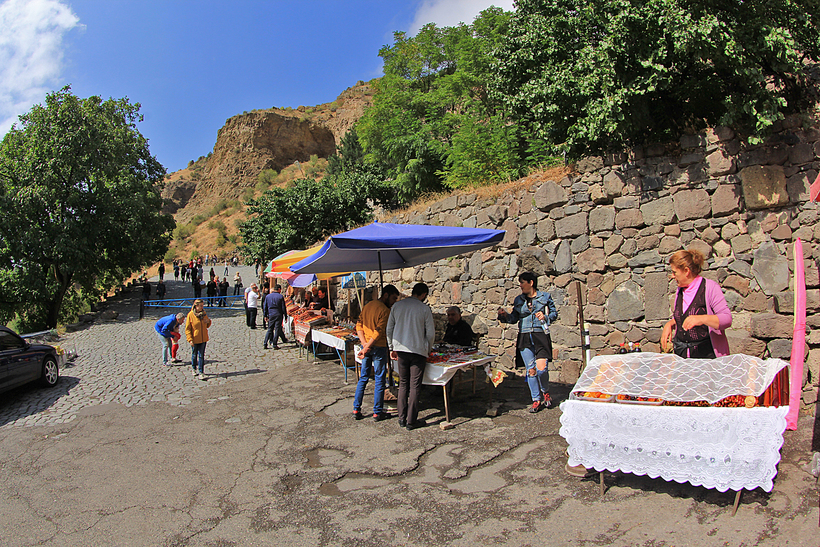 Общественный транспорт сюда не ходит. Поэтому либо такси от Еревана (ехать примерно 40 километров), либо на автобусе до Гарни, а уже оттуда на такси. В Гарни таксисты на каждом шагу, предлагают свои услуги по доставке в Гегард. Мы поступили немного нестандартно и путь от Гарни до Гегарда проделали пешком, причем не по дороге, а по ущелью, вдоль реки. Получилось около 9 км. Тропа не очень хорошая, местами приходилось пересекать руку и ручьи.