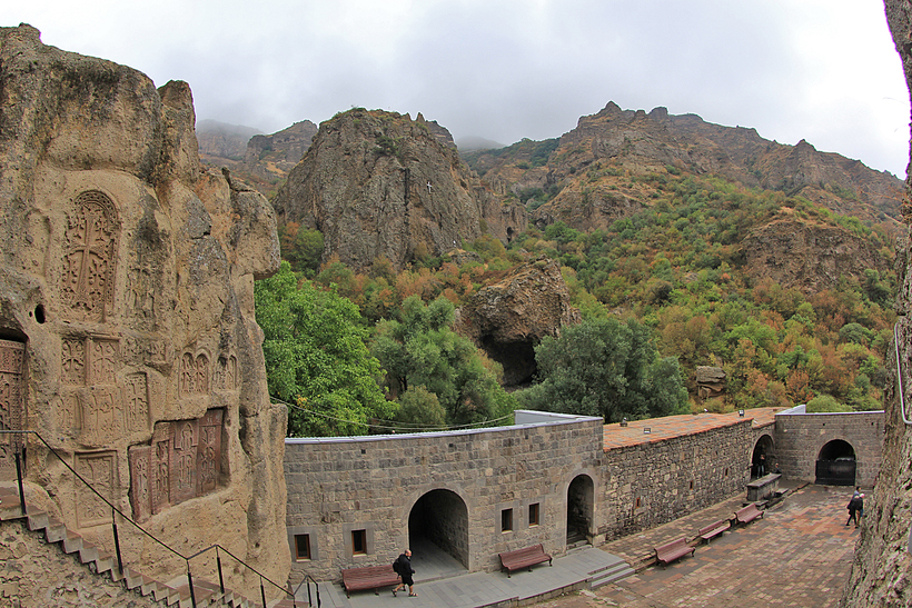 Зачем ехать: Своими глазами увидеть знаменитый монастырский комплекс, внесенный Всемирного культурного наследия ЮНЕСКО. Часть помещений выдолблена в утесах, часть представляет отдельно стоящие здания, а часть интегрирована в скальный массив. Это одно из наиболее часто посещаемых туристами мест в Армении. Монастырь, как и почти все в Армении, очень древний, основан в IV веке. Неоднократно разрушался захватчиками и землетрясениями, перестраивался и свой окончательный облик обрел только в XIII веке.