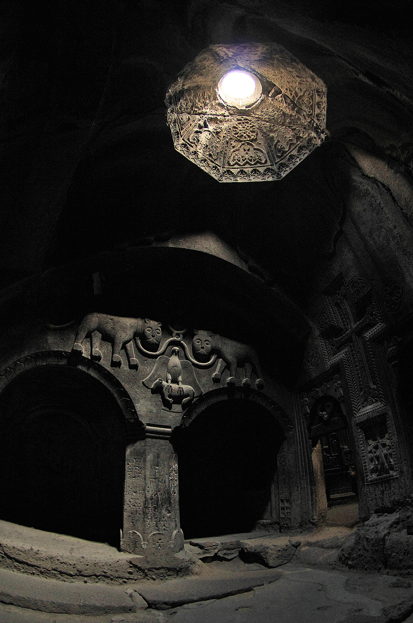 Вокруг расположены высеченные в скале усыпальницы, ризницы, жаматуны и часовня св. Григория. По всей территории можно увидеть хачкары - традиционные для Армении каменные стелы с крестами. Внутри помещений вас ждут фрески и прекрасная резьба по камню.