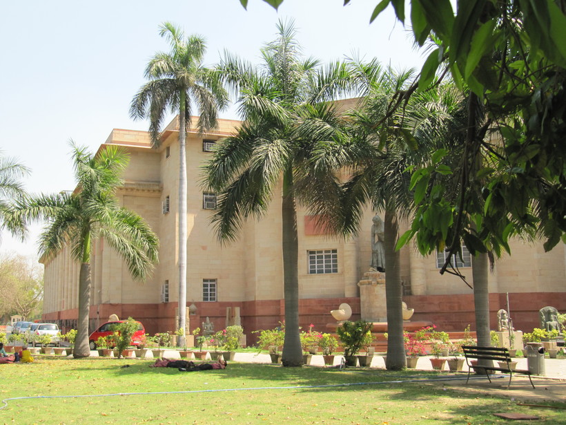 Это очень большой и интересный музей! Я изначально не планировала специально его посетить, поскольку не отношу себя к особым любителям музейных экспонатов. Оказалась я здесь во время пешей прогулки, люблю район станции метро Центральный секретариат- и Президентский Дворец близко, и Ворота Индии. Там ухоженно и чисто, много газонов, клумб с цветами и если углубиться дальше, можно попасть на тенистые улицы. Так я оказалась у ворот Национального музея в Дели. Слышала, что там интересно и экспозиция очень богатая- около 200000 экспонатов. Поэтому, решила сама там все увидеть! Цена билета, конечно, не совсем дешевая- было около 650 рупий, но в его стоимость уже входил аудиогид. Правда, на русском языке нет, пришлось довольствоваться английским.