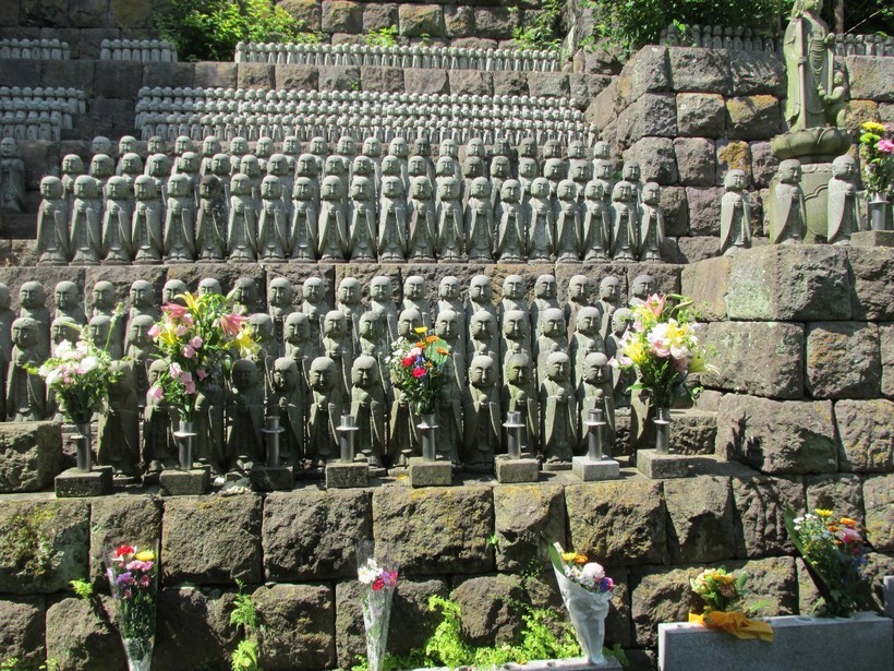 Каждая такая статуэтка - чей-то нерожденный ребенок (аборт, выкидыш, смерть сразу после рождения - считается все). Их тысячи в каждом храме. Можно подумать, что они копятся там на протяжении многих лет, но это не так. Каждая статуэтка стоит на свое месте всего год, после чего придается земле, а на ее месте устанавливается новая и так до бесконечности. Очень печальная и мрачная концепция.