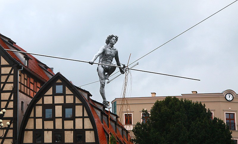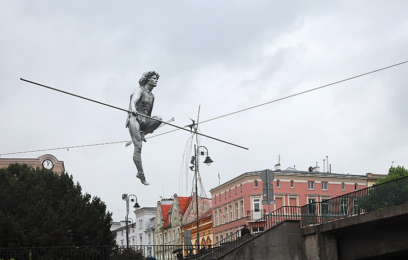 Мой тур по Польше охватил достаточно большое количество городов. Я побывала в крупных городах, таких, как Краков, Варшава, Гданьск, но помимо этого меня заносило и в небольшие городки. Поначалу я думала исключить их из своего списка мест, где обязательно должна побывать. Но ничего не вышло. Итак, я оказалась в очаровательном местечке с названием, которое я смогла выговорить далеко не с первого раза - Быдгощ. Здесь очень мило, интересно, атмосфера кардинально отличается от мегаполисов. Я много где тут побывала, но сейчас хочу рассказать о достопримечательности, которая меня впечатлила сильнее всего - скульптуре канатоходца.