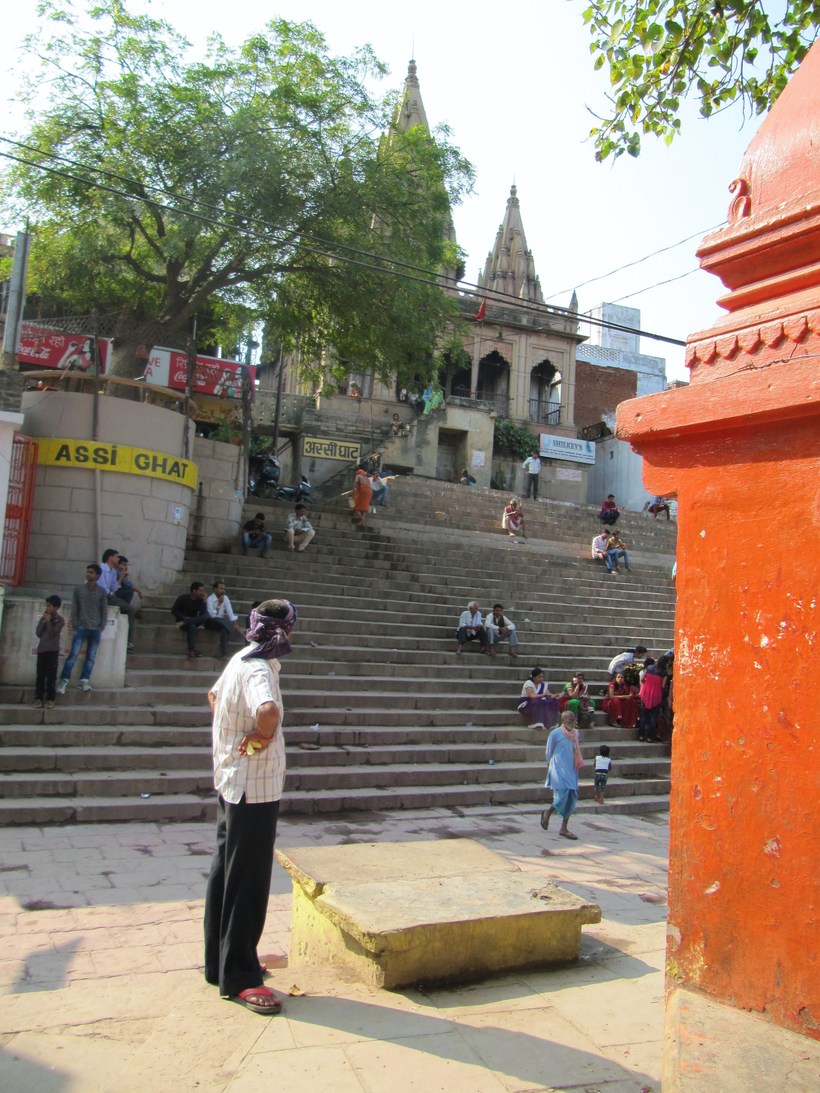 Асси гхат наряду с Дасашвамедхом является одним из самых известных и важных гхатов Варанаси. Гуляя здесь, я всегда встречаю большое количество паломников и иностранных туристов, многие из которых выбирают этот район для длительного и спокойного проживания. Почему именно Асси? Это единственный гхат в Варанаси, до которого непосредственно возможно физически подьехать на машине. Ко всем остальным гхатам нужно топать только пешком, высадившись на дороге и продолжая свой путь сквозь узкие лабиринты старых улочек, по которым рикша и уж тем более автомобиль никак не проедут. Это несомненный плюс. Особенно когда вы с большим и тяжелым багажем (в свой первый Варанаси я так и плутала по узким улочкам гали в поисках геста, так как должна была заселиться на другом гхате- шла после рикши минут 10-15 еще и все это с тяжелым рюкзаком).