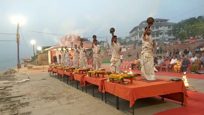 Отмечу, что в отличии от гхата Дасашвамедх, тут церемония Ганга аарти проходит без такой толчеи и толп народа, будет поспокойнее.