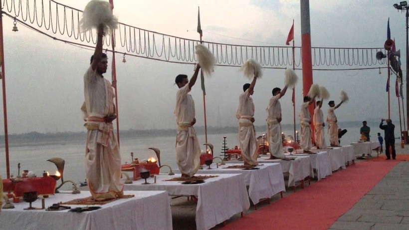 По утрам тут проводится церемония поклонения реке Ганг- Ганга Аарти. Красочное действо разворачивается на рассвете и пуджари в длинных атласных одеяниях совершают пуджу с огнем и лепестками цветов, делая подношение реке. Смотреть можно абсолютно бесплатно, наблюдая это действо, я словно попала на театральную постановку. Такая же церемония проводится и вечером- это происходит около реки, так что заблудиться невозможно.
