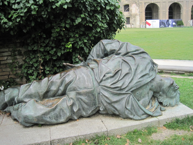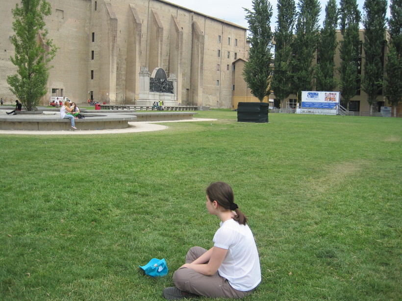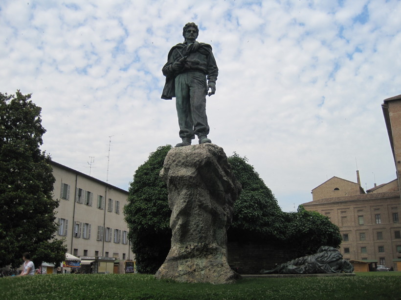 Честно говоря, скульптура, лежащая под кустом, одна единственная в своем роде. Не думаю, что где-то еще есть что-то подобное. Вот такую интересную площадь, показала мне Парма. Город за один день сумел удивить меня несколько раз. Это при том, что я абсолютно не ждала сюрпризов и была готова просто посмотреть интересный итальянский, небольшой городок. Я вышла с площади мира и пошла дальше к центральной площади Пармы. Уже посетив центральную площадь, я опять мысленно вернулась к Площади Мира. Может быть из-за того, что я увидела ее в Парме первой, я не смогла оценить ее оригинальность сразу. Все последующие площади были практически похожи, и взгляду было сложно зацепиться за что-то, чтобы осталась в памяти. А вот Площадь Мира запомнилась мгновенно и надолго, если не навсегда.