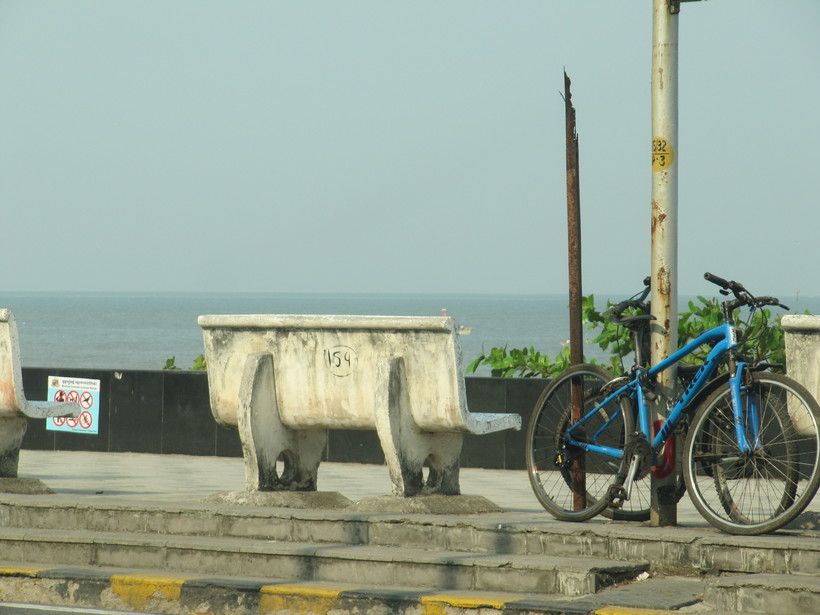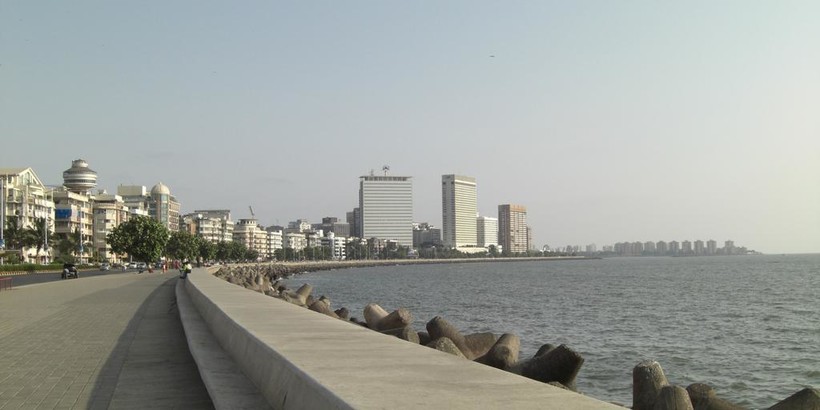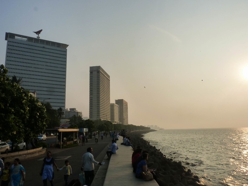 Идти по Набережной очень удобно. Можно идти по самой насыпи, где сидят парочки. А можно по тротуару. С одной стороны расположились отели, а с другой стороны- Аравийское море. На море и город тут открывается шикарный вид. Заскучать не получится- в конце Набережной как дойдете до пляжа Чоупатти, куча киосков, чайных и разнообразных кафешек с индийской едой!