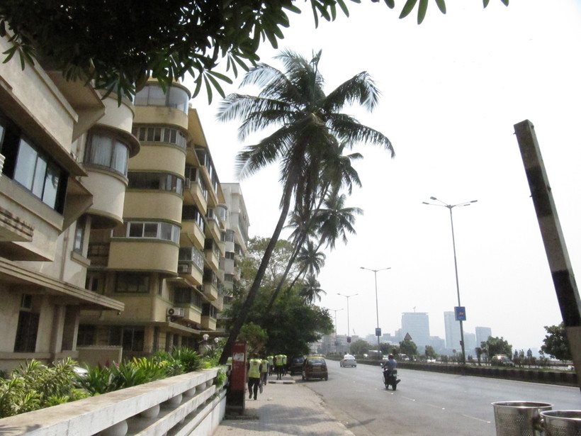 С набережной Марин Драйв я познакомилась в свою первую прогулку по Мумбаю (штат Махараштра), когда направлялась к Воротам в Индию и отелю Тадж Махал, основным достопримечательностям района Колаба. Набережная довольно длинная, в 3,6 километров и я смогла охватить лишь ее часть. Она выполнена в форме полумесяца с естесственной бухтой, проходя через пляж Чоупатти и заканчиваясь на Малабарском холме. Я подьезжала к Набережной на машине. Гулять можно очень долго. Тут всегда наблюдается засилье местных. Набережная- это одно из любимейших мест местных жителей для отдыха и прогулок. Причем много как молодежи, так и пожилых людей. Я была там в утреннее время, но мне говорили, что там чудесно вечером, когда зажигаются фонари и огни застроек - все это выглядит как сверкающий полумесяц или ожерелье, за что набережная Марин Драйв и заслужила свое второе название- "Жемчужное ожерелье" или "Ожерелье королевы".