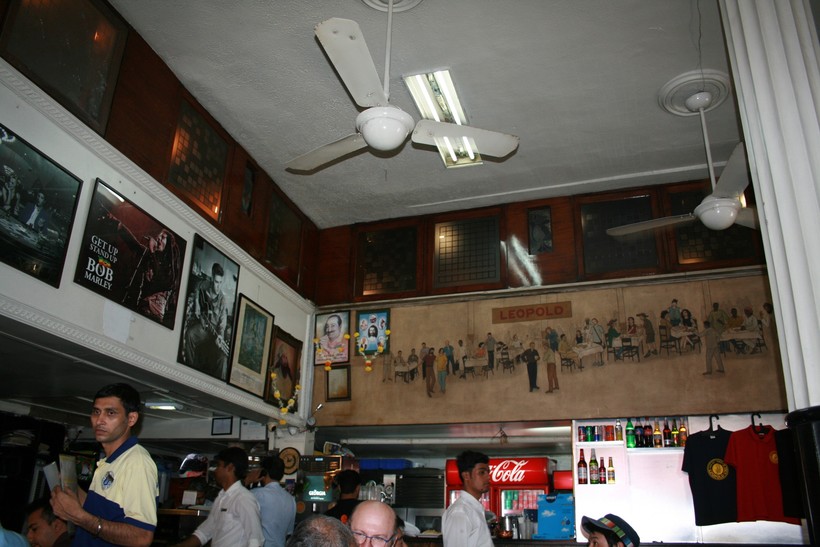 Я побывала и в кафе "Леопольд", описанном в "Шантараме" как место встреч главных героев- если честно, ожидала от этого места чего-то большего. Но чуда не произошло. Но место не плохое:-) старинная архитектура и следы от пуль в стенах как напоминание о теракте 2008 года. В кафе я заметила персидские мотивы- тут большая община парсов в Мумбаи. В "Леопольде" кушала паратхи (лепешки с начинкой) с маслом гхи и кофе с мороженым, цены тут не ресторанные, но и не дешевые. Почти все столики заняты, вечером наверно вообще все занято- я была часа в 2 дня и место нашлось. И, увы, в кафе такого уровня нет вай-фая, беда с инетом в центре старого Мумбаи. Тут продаются футболки и кружки с символикой кафе "Леопольд"- если вы фанат книги - прикупите на память! Я читала книгу, но не впечатлилась- я вижу Индию иной :-)