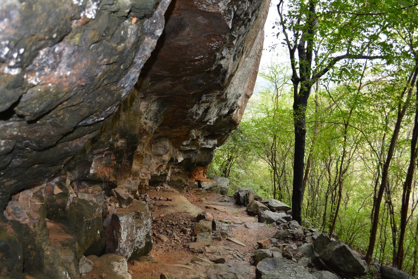 А затем началось ещё более захватывающее испытание. Мы начали подниматься ещё выше и выше на вершину горы через густой лес и огромные скалы. Ступени здесь в очень плохом состоянии. Между валунами в стародавние времена размещались кельи монахов. Но даже в настоящее время они приходят сюда для уединения и медитации.