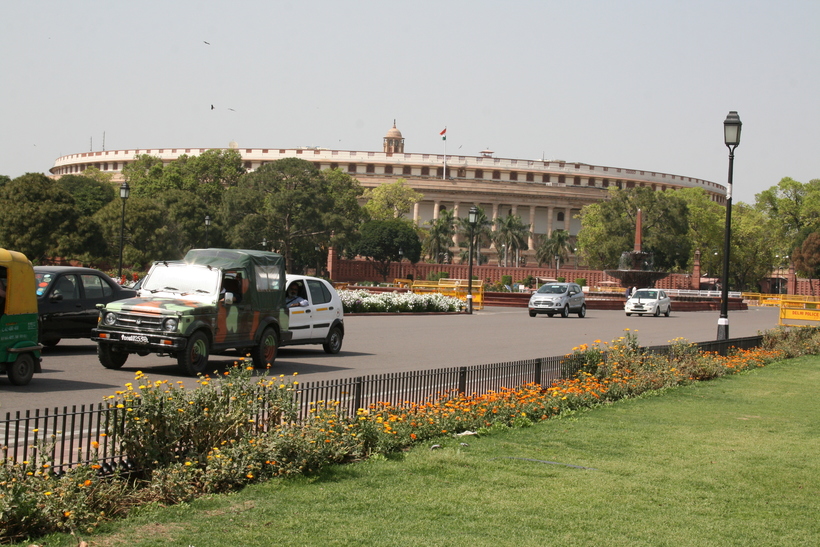 Само здание большое, его закончили строить в 1927 году, тогда почти всю часть Нью-Дели проектировал британский архитектор Эдвин Лаченс. Здание до сих пор используется по назначению для заседаний парламента. Внутрь, конечно, никого не пускают, но снаружи тоже хорошо посмотреть, где заседает правительство Индии- так что лично мне было интересно исследовать этот район. Кстати, я обратила внимание , что здание Сансад Бхаван имеет круглую форму- очевидно прототипом было колесо дхармы Ашоки- эта символика используется и на монетках и на национальном гербе страны.Вокруг здания раскинулись красивые сады и, как для Индии, очень все чисто.Территория этого района вообще отличается повышенной ухоженностью, если можно так сказать и безопасностью. Я насчитала несколько полицейских постов с машинами и дежурными, пока гуляла в тех местах. Полицейские приветливые, могут подсказать вам куда идти, если заблудитесь.