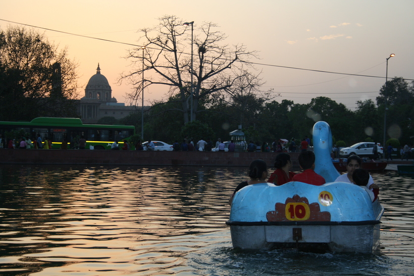 Да и просто приятный район- тут есть фонтаны и по каналам Ямуны можно даже сплавиться на катамаране, я решила себе не отказывать в этом удовольствии, катамаранчики старые с надписью "Delhi tourism", но работают исправно, не грязные- в основном публика катается семейная- пары с детьми, молодежь, вполне безопасно, да еще в самом сердце города. Крутить педали надо самому- не скажу, что сильно интересно, но я и не пожалела, просто вспомнить детство. В этом районе куча передвижных будочек на колесах с мороженым- и молочное, и фруктовый лед с диковинными вкусами от кока-колы до фисташки и "гол-гаппы"- гол-гаппа это отдельная история, это не сладкое мороженое, вкус солоноватый со специями (вообще гол-гаппа это такие хрустящие пустые шарики с острым водным соусом)- гол-гаппа пошла в мусорку, я не смогла осилить этот вкус в мороженом :-) Цены недорогие- по 10, 20 рупий, в баночках- по 50 рупий.