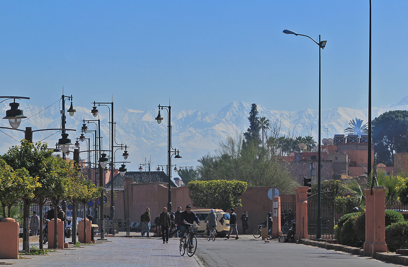 Выходишь на улицу и сразу с головой окунаешься в пеструю смесь звуков и запахов восточного города. С террасы открывался прекрасный вид на Атласские горы. Впрочем, практически такой же вид порадует вас почти с любой открытой площадки.