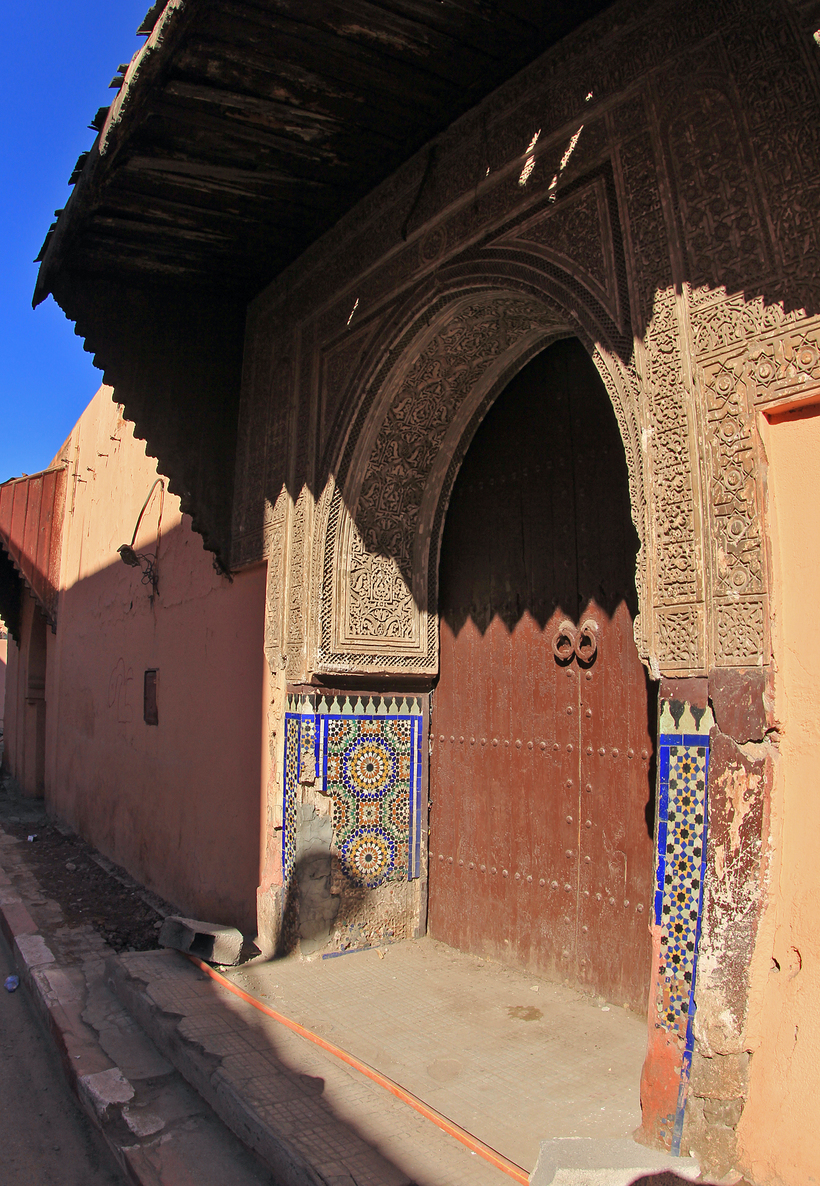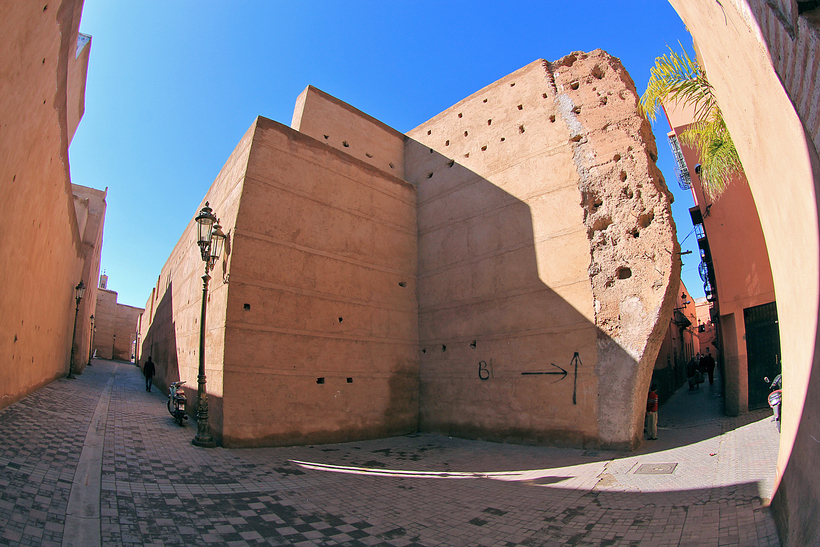 Правда, открытых мест в медине Марракеша немного. Зато в изобилии представлены минареты, традиционные дома из красной глины, классический лабиринт из извилистых узких улочек, куски крепостной стены, возникающие в самых неожиданных местах, красивейшие резные двери. Когда-то медина была окружена стеной по всему периметру, сейчас уцелели лишь отдельные фрагменты, также сохранились 20 ворот, все они разные и по-своему примечательны.