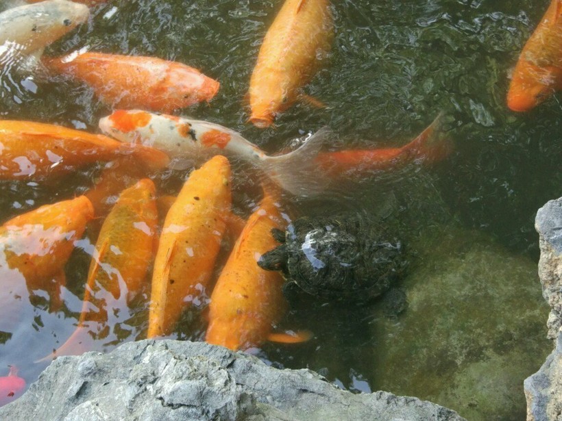 Можно прихватить немного корма для рыбок и черепашек. Пруды кишат карпами!