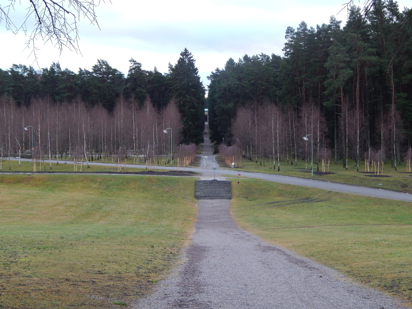 Я была на Лесном кладбище зимой, в пасмурную погоду, но уверена, что летом или весной, когда солнце пробивается сквозь ветки деревьев и заливает поляну своим светом, здесь гораздо красивее.