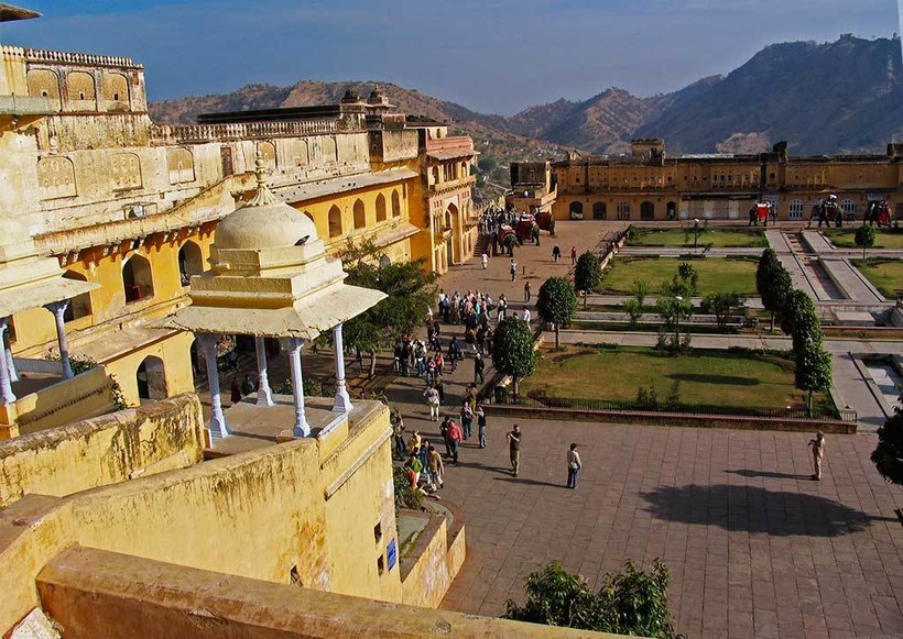Амбер состоит из нескольких дворцов и расположен на высоком холме, соединяясь подземным ходом с еще более неприступным фортом напротив. Но формально это разные сооружения.