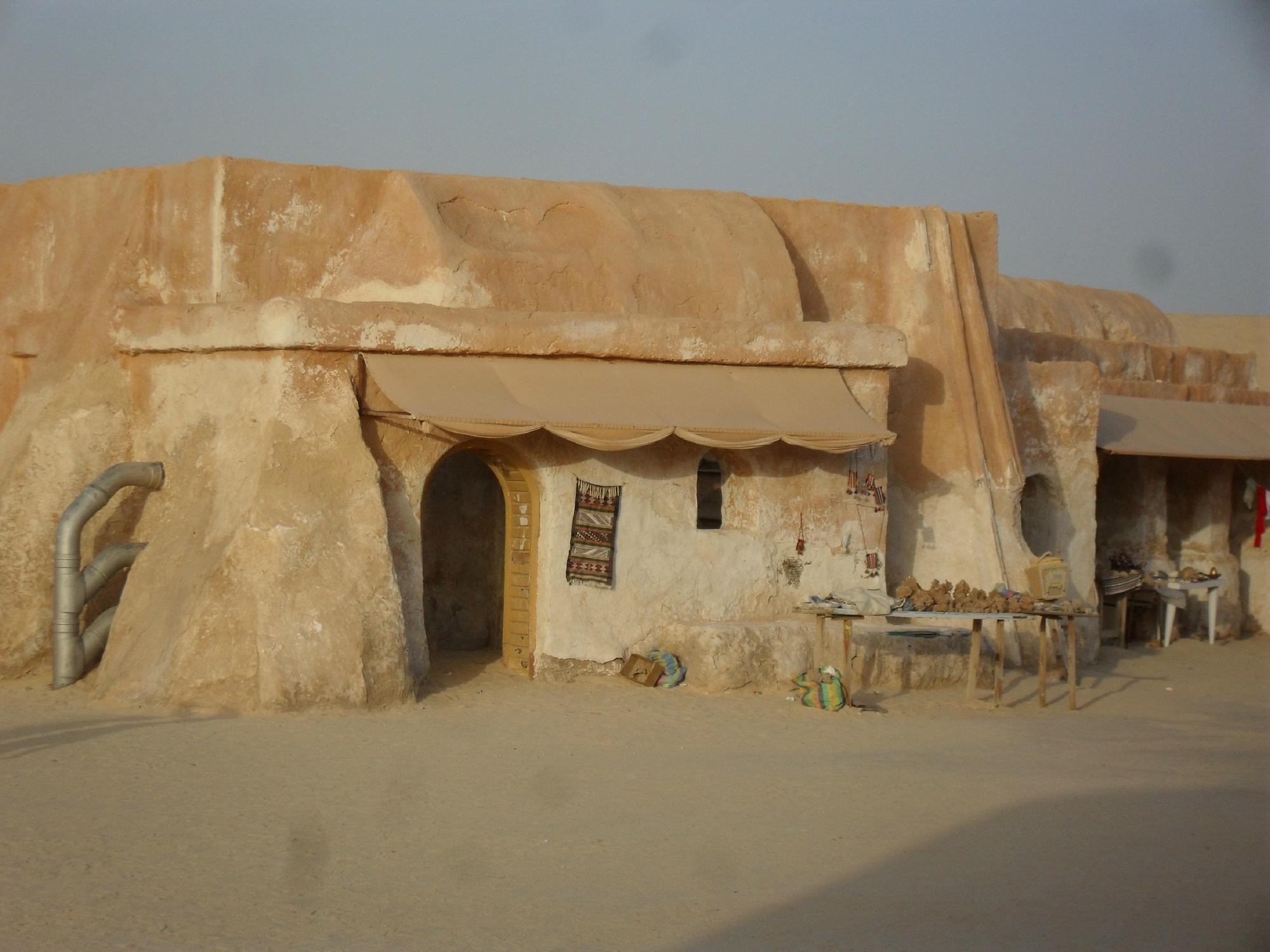 Вот я и в Тунисе. “Тунис - страна маленькая, объехать её не составляет труда” подумала я и решила не останавливаться на пляжах средиземноморья. Тунис, он тем и хорош, что тут полно всего. На маленькую площадь страны приходится коллизей, четвертая святыня мусульман (город Кейруан), Карфаген, пустыня, декорации фильмов. Начнём, пожалуй с декораций фильмов. Фильм-то в Тунисе снимали не абы какой! Фильм этот войдет в историю. Это звёздные войны, эпизод IV - новая надежда. А пока на дворе восьмидесятые, Джоржу Лукасу выделили совершенно немного денег и будущему отцу блокбастеров надо урезаться. Снимать решили на натуре - в Сахаре. Где как не в Сахаре снимать Татуин? Там у же у ворот пустыни выстроили и декорации. Но Джоржу Лукасу не везло в процессе создания фильма: мало того что студию он нашёл с огромным трудом, актёры играют в пол силы, так ещё и песчаная буря.