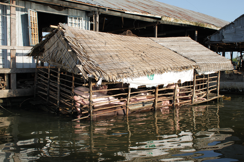 Еще занимаются сельским хозяйством, выращивая, как я уже писал, ряд культур и, как ни странно, разводя свиней. Хрюшки, судя по всему, прекрасно чувствуют себя в плавучих загонах, в которых вода вымывает отходы жизнедеятельности и приятно охлаждает в жару.