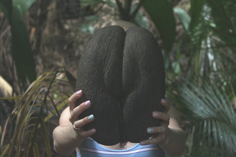 Экскурсия проходит в небольшой группе из 8-10 человек, на английском языке и начинается с демонстрационного лотка с плодами Коко дэ Мэр. Здесь, конечно же, туристы устраивают различные фотографические бесчинства. Я не стала исключением. Кстати, иммиграционный штамп Сейшельских островов имеет форму этого кокоса.
