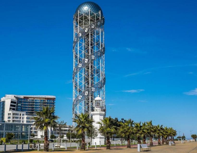 130 метровое здание выглядит как молекула ДНК: металлическая ось (лифт), которая окружена двумя листами, на которых расположены все 33 буквы грузинского алфавита. Башня несет исключительно патриотический смысл. На её высоте располагается ресторан и смотровая площадка. Вход стоит 12 лари.