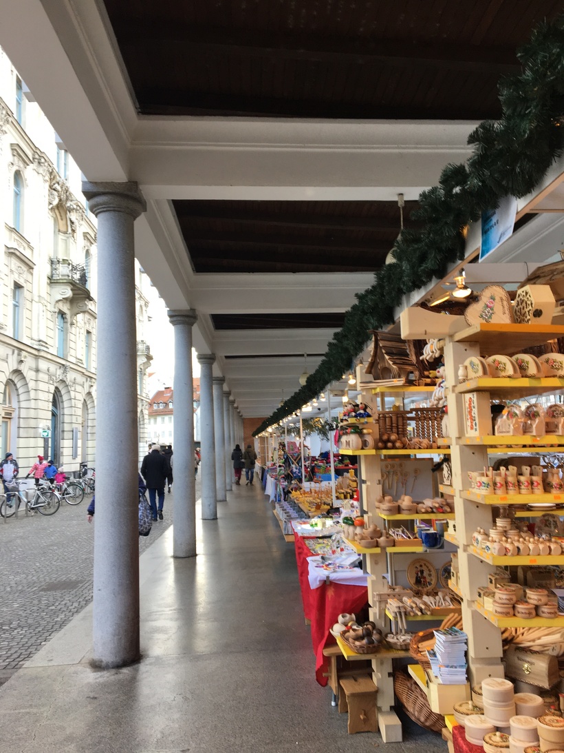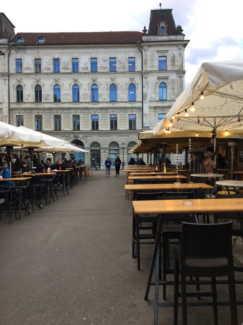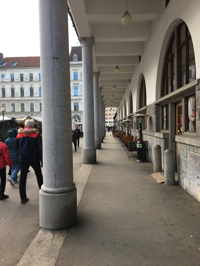 Так случилось и в Любляне. Здесь Центральный рынок расположен в черте старого города, между мостом Мясников и мостом Драконов. Вокруг много интересных достопримечательностей и нагулявшись по старому городу я зашла на рынок, отдохнуть и попробовать местные деликатесы. Сам рынок очень красивый, белые колонны, сразу привлекают внимание.