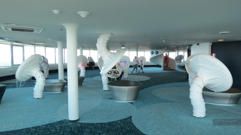 Доступная туристам площадка телебашни выполнена из стекла, есть даже часть с прозрачными полами. Скажу Вам честно, мой страх высоты очень велик, но всё-таки я встала на этот пол, и получила стресс и дозу адреналина в кровь. Но это было только на пользу! Также на этаже имеются сенсорные таблицы с информацией о городе и башне для посетителей, выполненные в футуристичном стиле, телескопы.