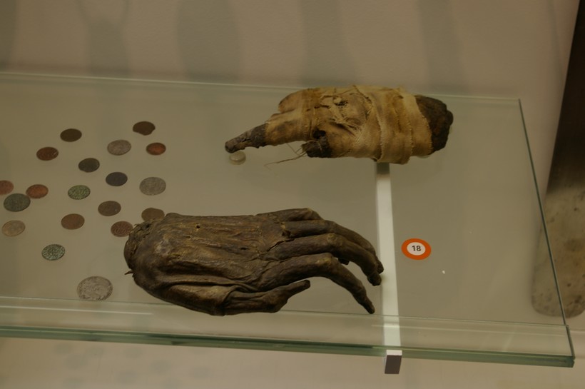 Впрочем, лично мне куда больше запомнился пример старейшей в Европе елочной игрушки, который относится к XVI веку. А еще, так как я в принципе большой поклонник хоррора, я не мог не обратить внимание на засушенные кисти рук, отрубленные у фальшивомонетчиков.