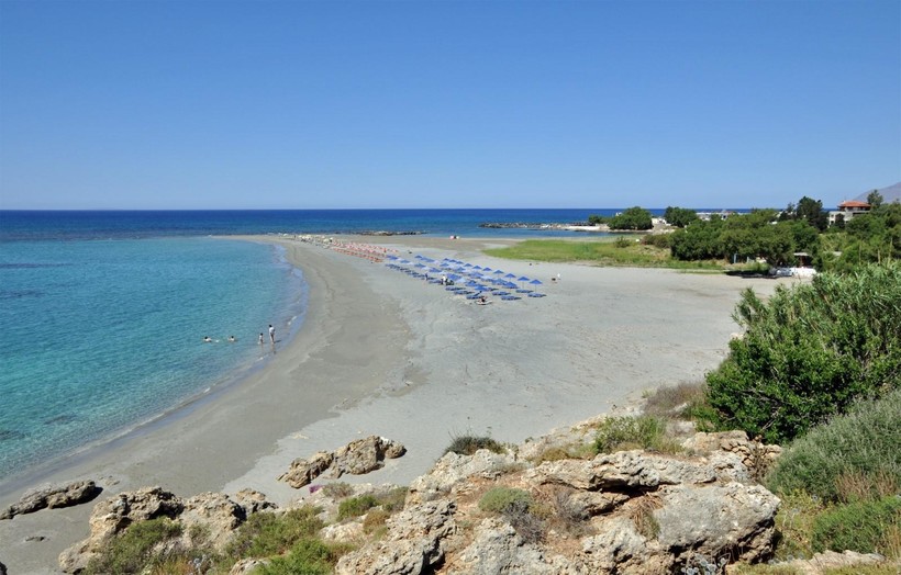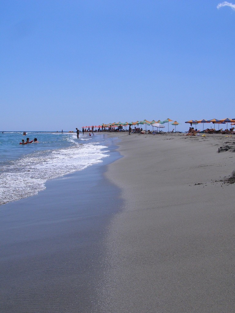 Мне очень понравился этот пляж, у него гораздо больше плюсов, чем минусов. Плюсы состоят в том, что он большой, широкий, песчаный, и там очень неторопливый заход в воду. Я предполагаю, что на него летом приезжает большое количество семей с детьми, и хочу отметить, что для детей, именно для купания, это идеальное место, потому что очень долго не становится глубоко, при этом вода прозрачнейшая – фактически, как всегда и везде на Крите, - и нет особых камней, везде песочек, поэтому опасность пораниться, где-то раздолбать палец о камень - минимальна.