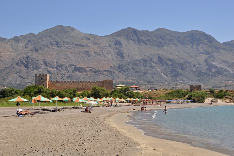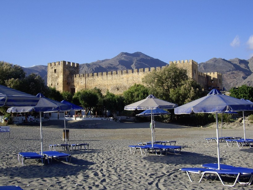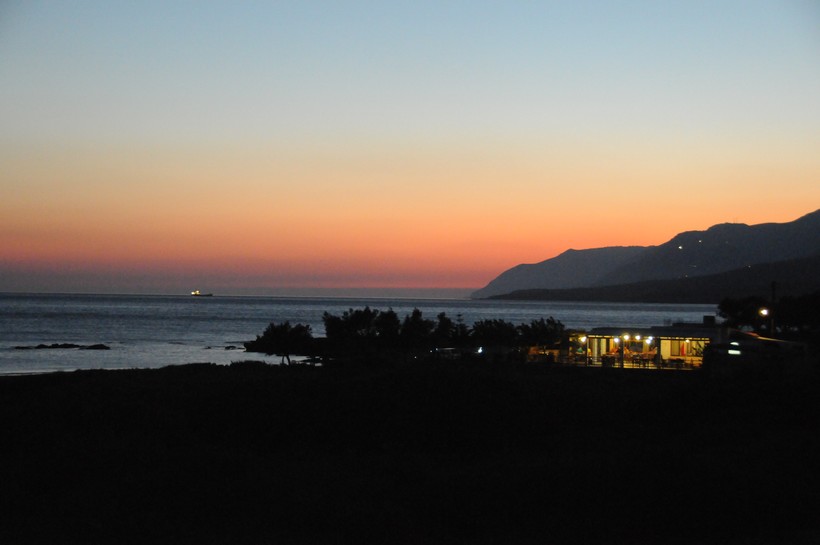 Теперь поговорим о некоторых минусах. Не смотря на то, что пляж бесплатный (я не уверена, что он бесплатный летом, повторюсь), там, к сожалению, отсутствует нормальная инфраструктура, к которой привыкают туристы, обычно отдыхающие на пляжах Крита. В Франкокастелло есть небольшая таверна, также есть ресторанчики при отелях, но до них нужно идти: они располагаются, конечно, недалеко от пляжа, но всё-таки не на нём. То есть, возможно, летом кто-то приходит со своими напитками и какими-то тележками, с которых что-то продаётся, но в октябре не было ничего такого.