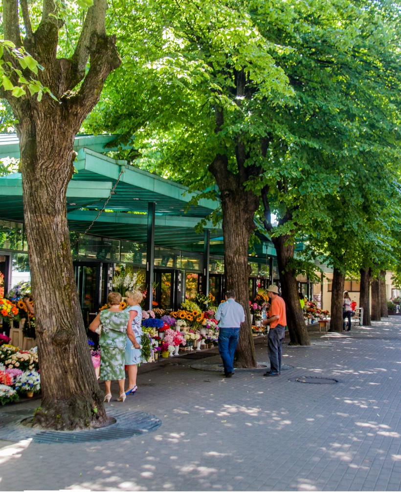 Вдоль одной из сторон парка тянутся цветочные ряды. Прекрасное место. Там в любое время года нежно и тонко пахнет розами, лилиями, гиацинтами... Если не успеваете за цветами на Центральный рынок, эти ряды – прекрасный вариант.