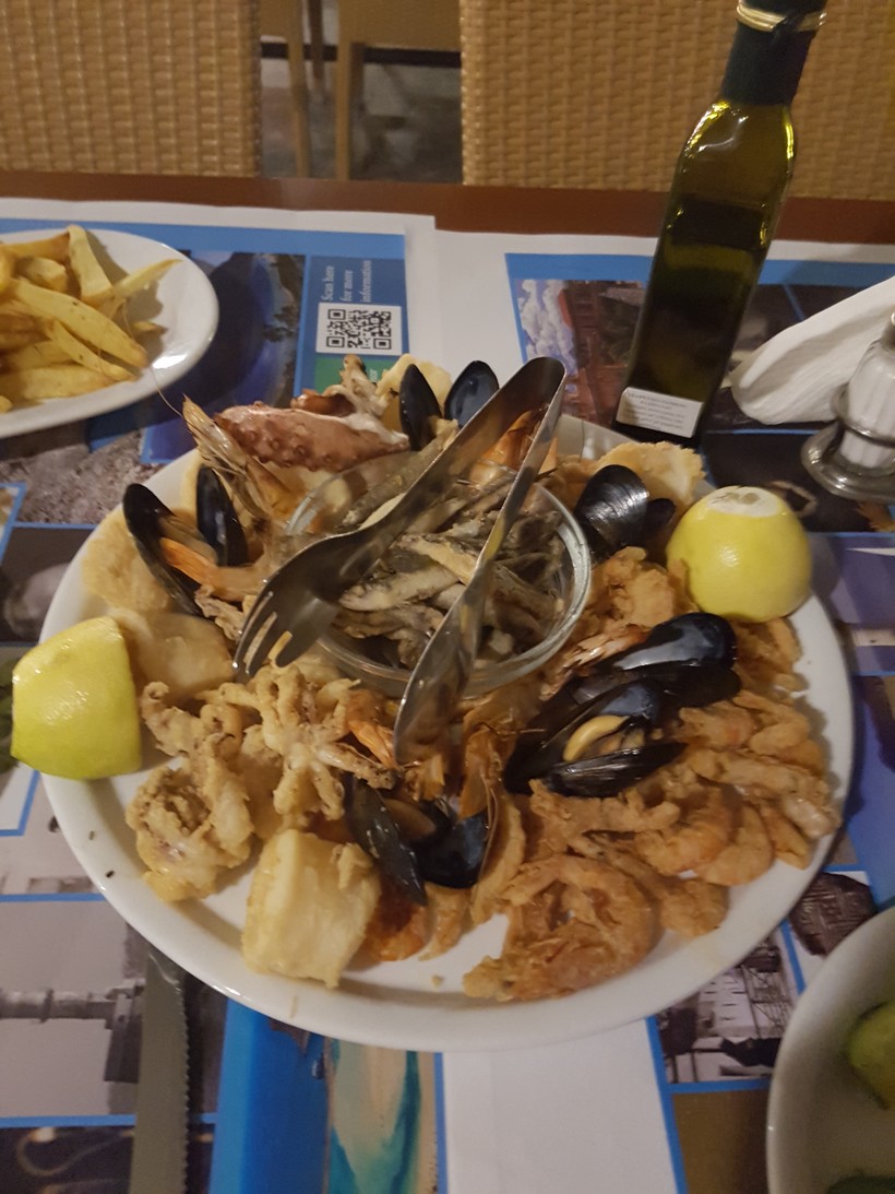 Отдельно хочу спеть оду ресторанам. Обычно первая линия в таких местах задирает цены. В Ханье для нас стало приятным сюрпризом, что в ресторане с видом на марину всё стоит столько же, сколько в обычной сельской таверне. Не шучу! За наш ужин перед объездом мы заплатили 21 Eur на двоих, и плюс вино, а ужин представлял собой огромную тарелку морепродуктов, картошку, салат, ракию и десерт. Мы оттуда не уходили – мы оттуда укатывались.