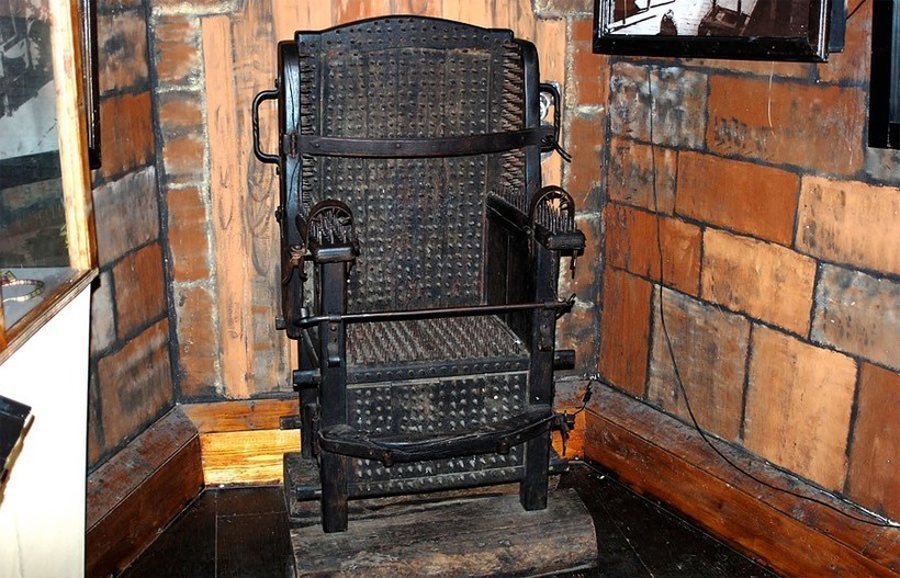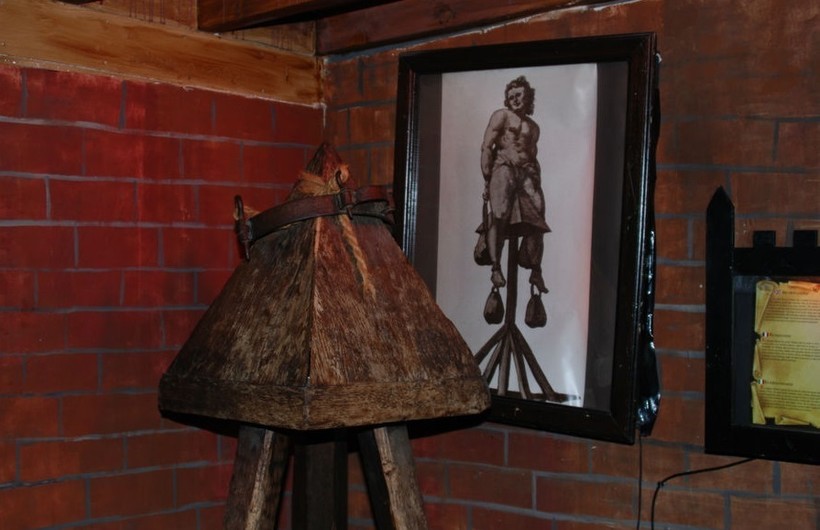 здесь наглядно представлены как популярные и известные пыточные агрегаты - испанский сапожок, айрон мэйдон (железная дева), так и менее известные, например, вилка еретика и стул ведьмы.